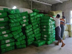 - ヤンゴンの倉庫にて支援物資を整えている様子