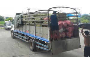 - マンダレーへ運ぶ物資をトラックへ積み込む様子